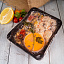 Креветка, мясо мидии, кальмар, вешенки, томат черри, лук порей, соус.