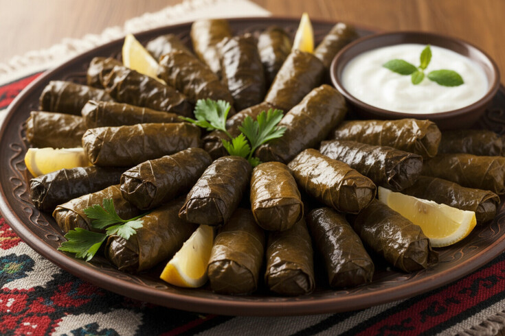 - Подавайте долму по-гречески, позволяя гостям самостоятельно полить свои рулетики на тарелке лимонным соусом по вкусу. Можно также посыпать долмадес свежей зеленью и свежемолотым черным перцем.