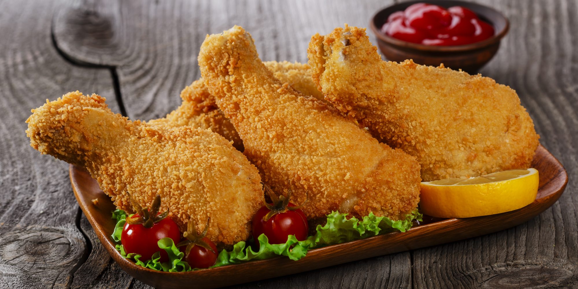 - Переложите на большую тарелку и подайте на стол. В качестве дополнения к куриным ножкам в панировке можно предложить любой соус по вкусу: томатный, чили, горчичный или майонез.