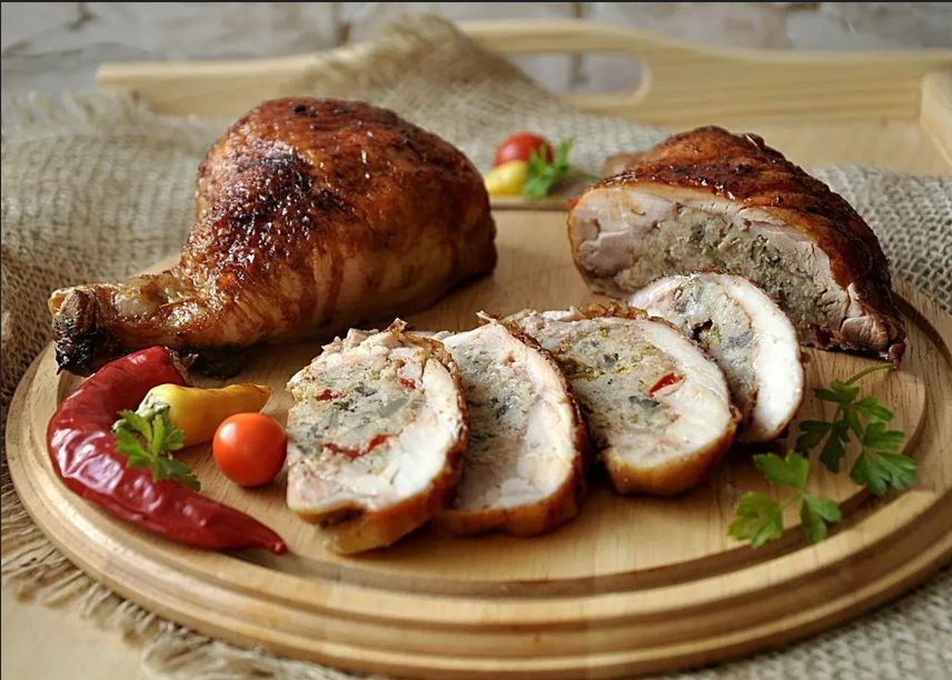 Окорочок фаршированный грибами и сыром