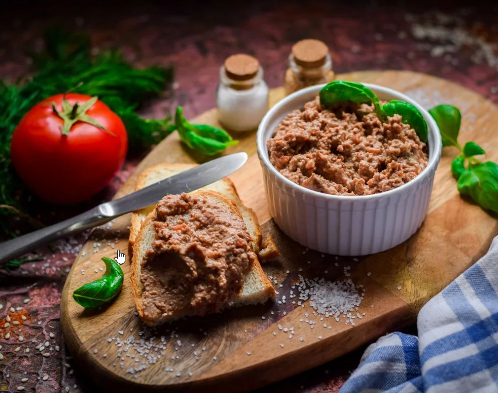 - Добавьте немного вареных куриных потрошков. Пробейте блендером до получения гладкого пюре. Постепенно добавляйте оставшиеся. Паштет должен иметь однородную консистенцию.