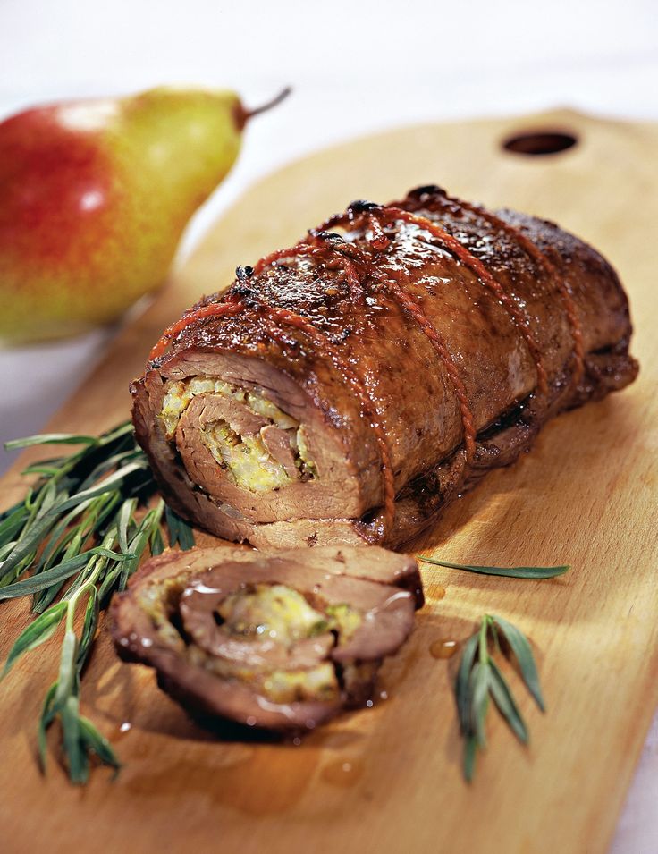 - Приправьте рулет солью и перцем, смажьте оливковым маслом, заверните в фольгу и поставьте в разогретую до 250 °С духовку на 10 мин. Затем уменьшите температуру духовки до 160 °С и готовьте еще 40 мин. Затем разрежьте фольгу, чтобы рулет подрумянился, примерно 10 мин. Подавайте рулет горячим.