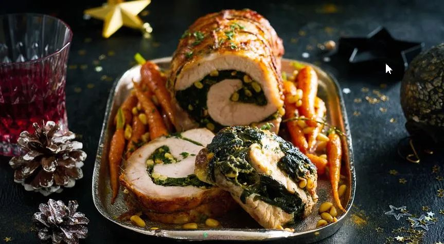 - Разогрейте духовку до 160 °С. Уложите рулет в застеленную пергаментом форму, запекайте в центре духовки примерно 1 ч 10 мин., до внутренней температуры 70 °С. Дайте мясу «отдохнуть» на блюде под листом фольги, затем подавайте, нарезав ломтями.