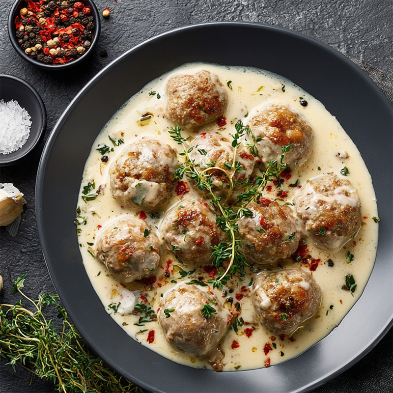 - НА ЗАМЕТКУ: Если белый соус для тефтелей под соусом бешамель не загустел, значит, вы использовали мало муки или она не очень влагоемкая. Попробуйте поварить соус подольше и выпарить часть жидкости. Или разведите в 0, 5 стакана воды 1 ст. л. кукурузного крахмала, влейте в соус и варите до загустения.