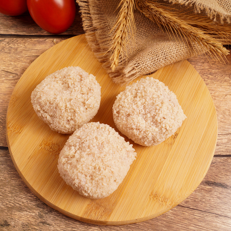 Куриные шарики очень хорошо смотрятся на праздничном столе. Особенно, если красиво оформить подачу. Например, выложите тарелку листьями салата, на них положите закуску. В каждый шарик воткните красивую шпажку. Можно добавить на шпажку еще слайс свежего огурца, маслину или оливку, ломтик сыра или помидорку черри.