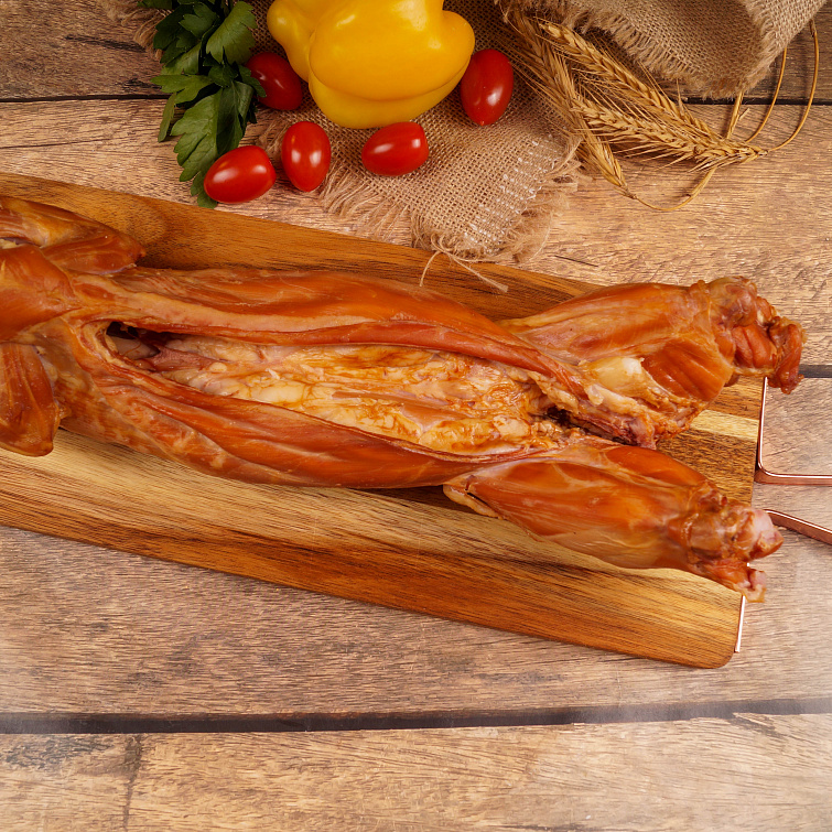 Мясо кролика идеально подходит для диетического, детского и фитнес-питания. Идеальный баланс белков и витаминов поможет вам разнообразить рацион и оставаться в отличной форме. В копчёном виде мясо кролика остается диетическим и сохраняет до 90% полезных веществ и витаминов. Тем более, коптим мы кроликов в собственном хозяйстве на ольховой щепе по старинным деревенским рецептам. Он получается очень сочный, вкусный и насыщенный ароматом дымка. Прекрасная закуска как для праздничного стола, так и для повседневной жизни.