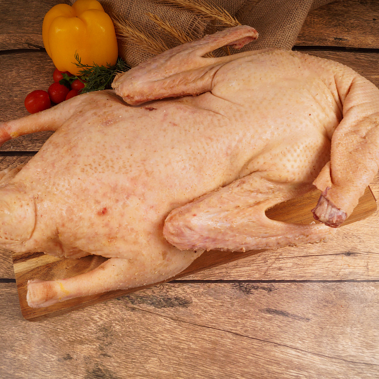Наши гуси щиплют травку и плещутся в чистых водоёмах. Их мясо нежное и вкусное, никаких вредных примесей или антибиотиков, только чистый продукт. Мясо гуся — товар сезонный: с марта мы начинаем выращивать птенцов, с сентября по апрель продаём охлаждённого гуся. В остальное время вы можете купить замороженную птицу.