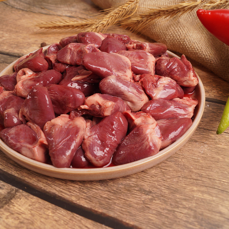 Утиные сердечки – это плотный мышечный орган с темным, насыщенным миоглобином мясом. Жира в сердце мало, зато много белка, микроэлементов и особенно железа. Сердце муларда имеет выраженный вкус, его используют как в качестве основного блюда, так и в виде начинок для пирожков, блинчиков, а в отварном виде кладут в салаты и супы, делают мясные деликатесы.