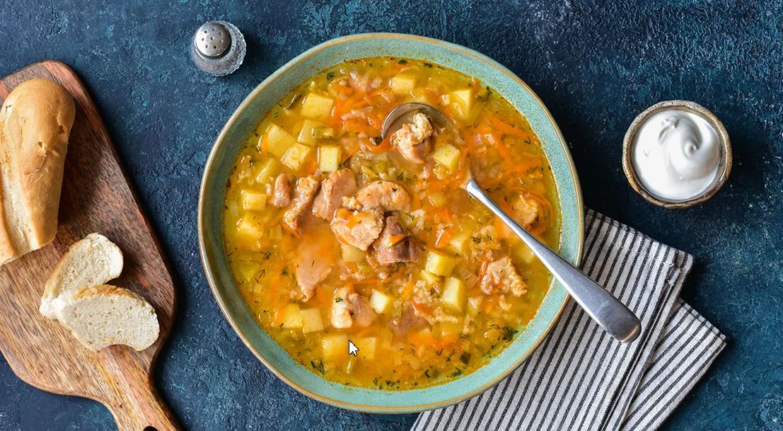 Рассольник с маринованными огурцами и рисом