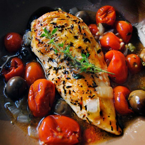 Рыба по-провански, с помидорами и маслинами